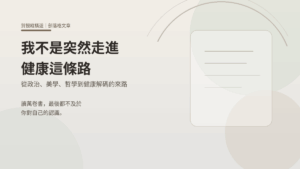 「賀慢縱橫遊」網站還在陸續架構中,我會把一路上對健康解碼、健康決策,以及真實現場中的一些觀察,慢慢整理上來。